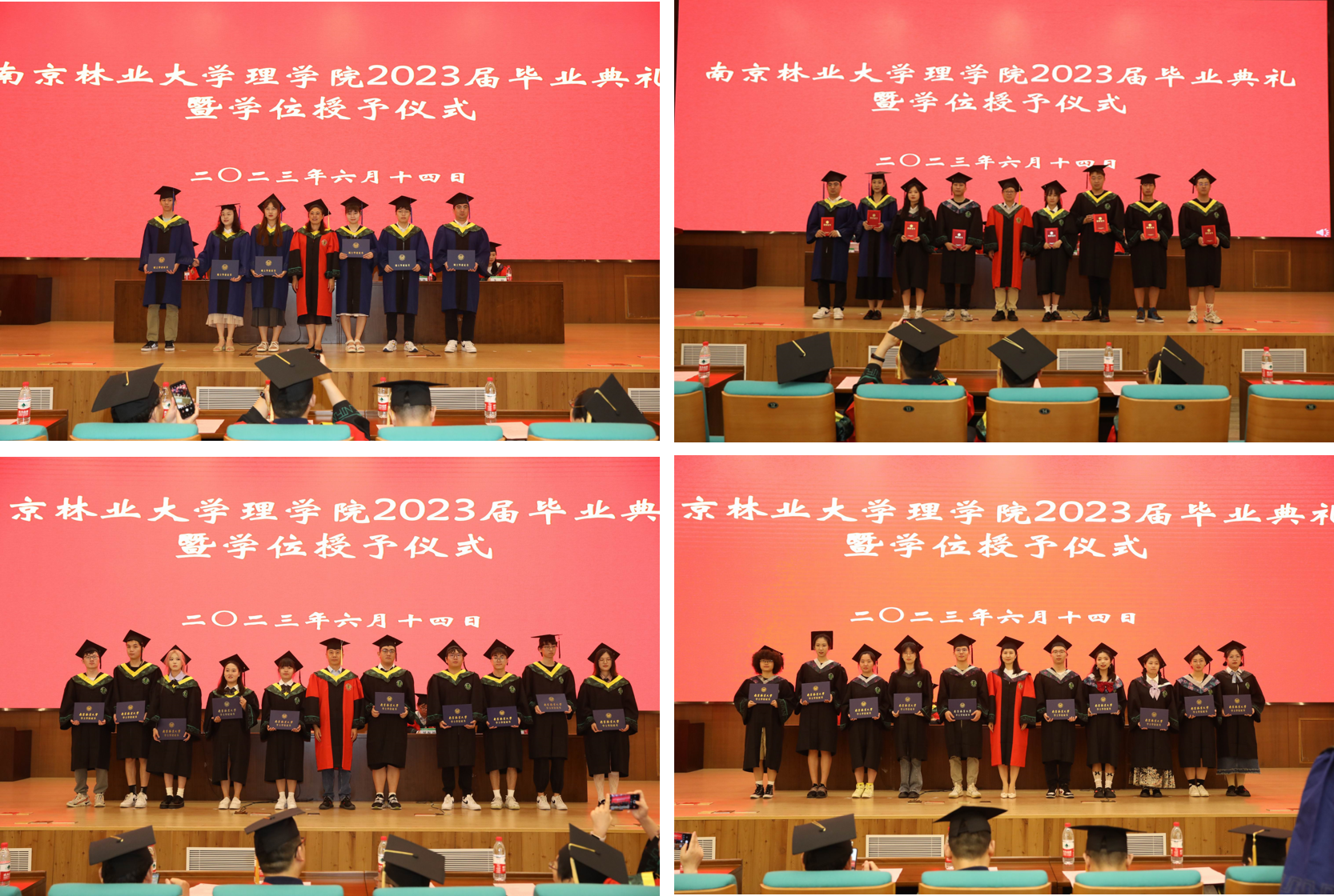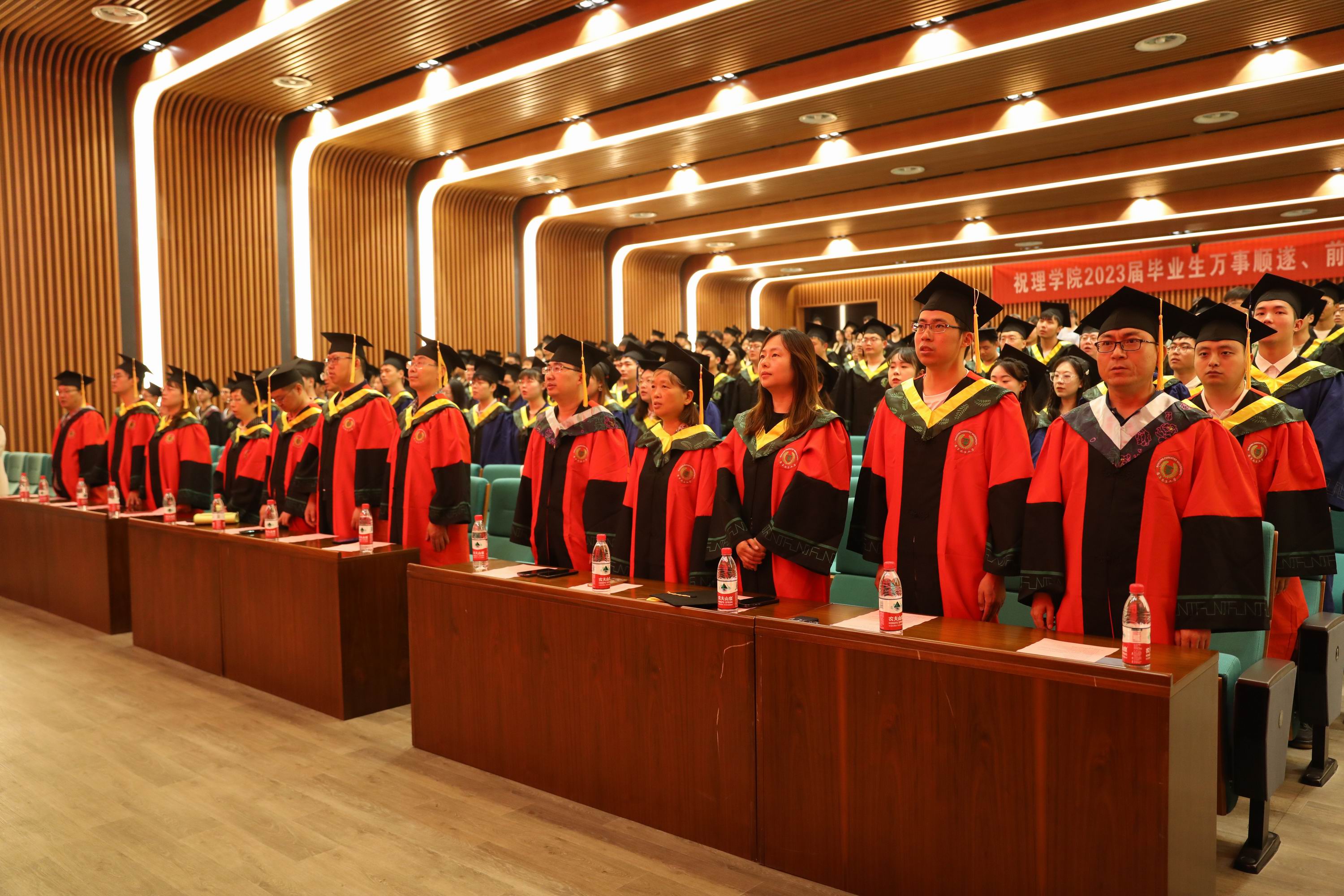 全体与会领导依次为毕业生们授予学位证书、拨穗正冠并合影留念,2023届毕业典礼在嘹亮的校歌声中圆满落幕。