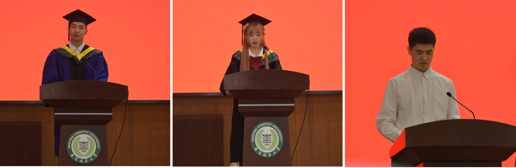 硕士毕业生代表张昊、本科毕业生代表王雯丽先后发言,表达了学子们对母校的感恩之情,并表示会铭记校风校训,不负韶华、不负时代,志存高远、脚踏实地,勇担重任、奋楫争先,努力成为国之栋梁。在校生代表何家宇向学长学姐们送去了美好的祝福,表示一定会向他们看齐,积极向上、努力拼搏,让人生无悔,让青春多彩!