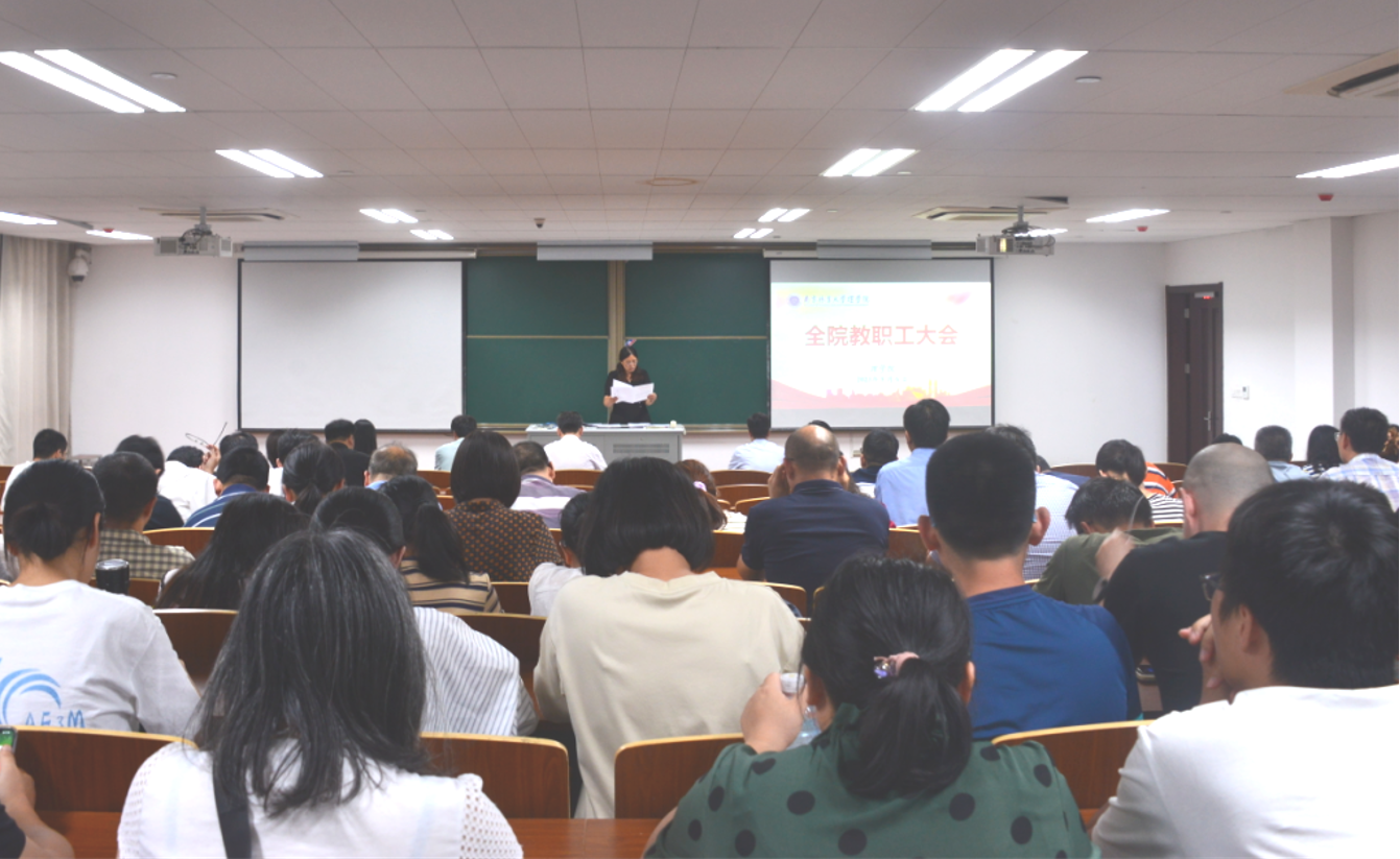 9月6日下午,云顶国际在9A207教室召开全院教职工大会,布置新学期工作。会议由公司党委书记赵安珍主持。