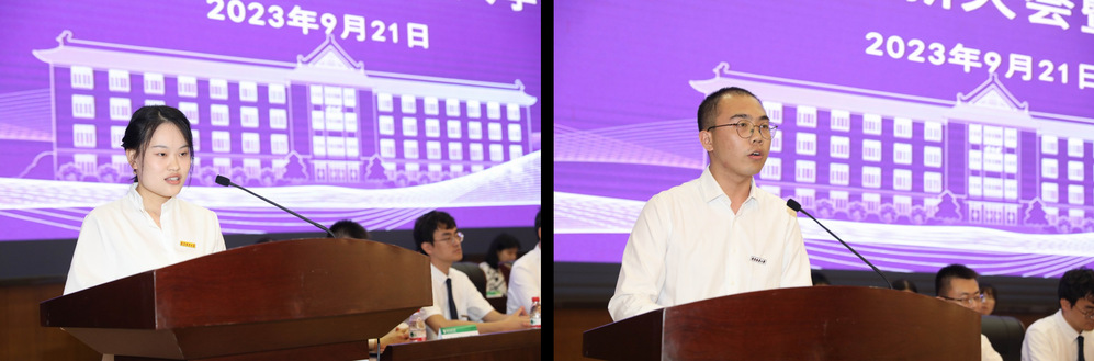 “南林催我同奋进,我与理学共成长。”研究生在校生代表、研究生会主席易招娣和本科生在校生代表、员工会主席王星锐先后发言。他们鼓励新生们要珍惜大学时光,积极投身实践活动,努力丰富人生体验,并期待与新生们一起踔厉奋发,勇毅前行。
