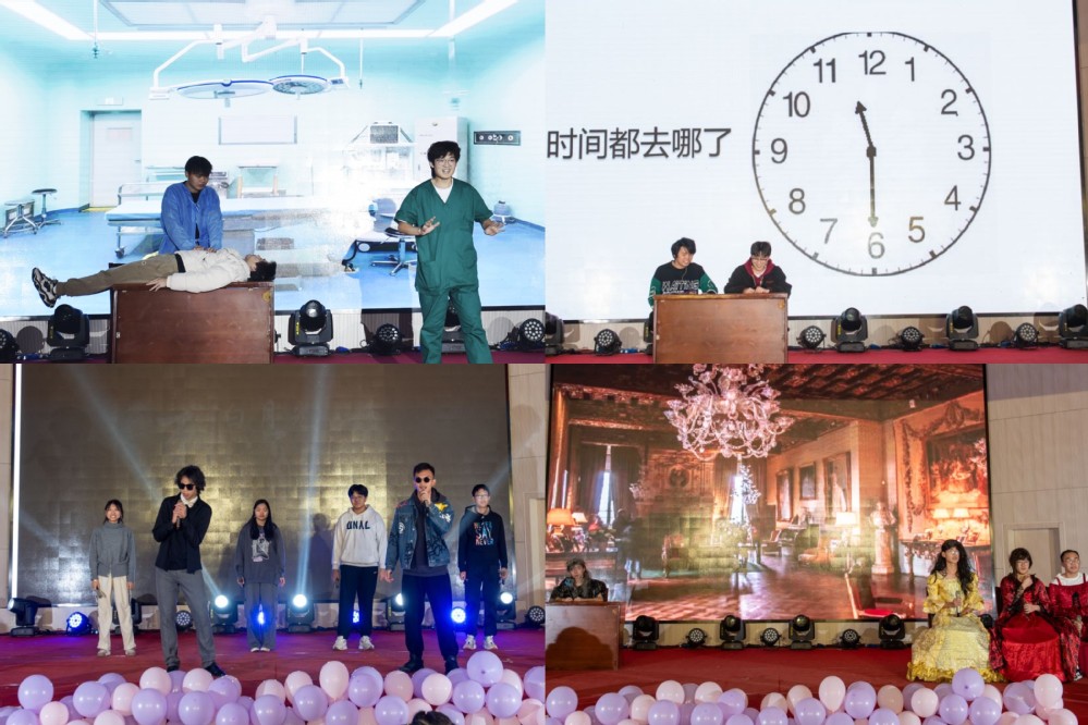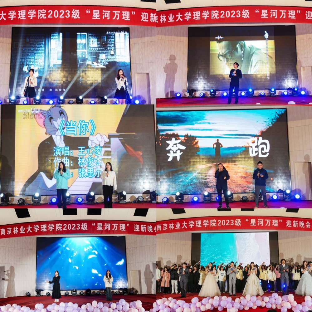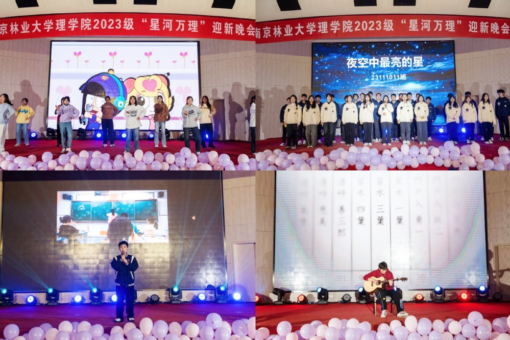 暖场视频是由2023级新生投稿制作的照片墙,一张张青春的脸庞上洋溢着对未来老员工活的憧憬与期待,紧接着播放的是学院领导对2023级新生的祝福视频,表达了对大家的美好期许。在激动人心的倒计时中,晚会正式拉开了帷幕。104班的舞蹈串烧《开心超人+奇迹再现+我的未来式》充满活力;101班小品《一念天堂》反转十足;《最后一页》让人想起青葱的高中时光;《夜空中最亮的星》让大家深信无论风雨坎坷,一路与理同行;《修炼爱情》把大家带入一个充满酸甜苦辣的故事;吉他弹唱《Like a star》、班长节目《凤凰传奇歌曲串烧》点燃了现场的热情;员工会部长节目《时间都去哪儿了》以幽默的方式传递珍惜时间思想;配音表演《回林的诱惑》和主席团节目《终于等到你》喜感十足,令人捧腹。