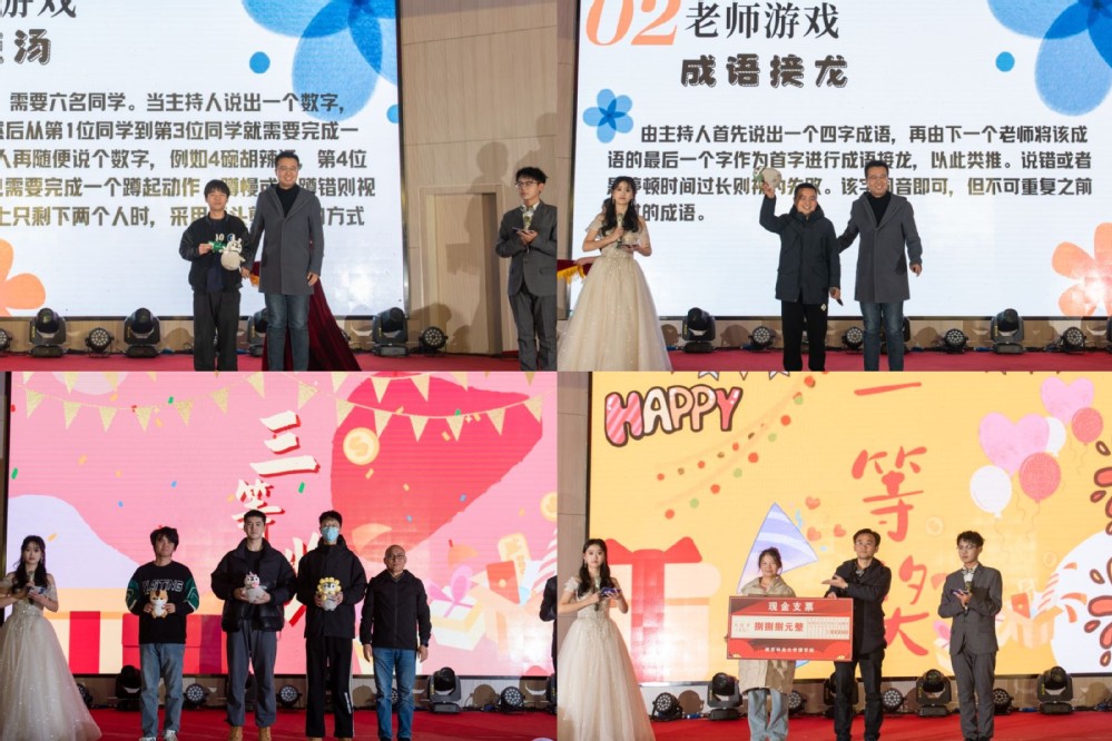 竞赛之星环节嘉奖了理院学子在学习与竞赛中展现出的优秀能力和卓越素养;公司党委副书记、副经理潘卿抽取最终大奖将现场气氛推向高潮;新生辅导员顾荣华和员工合唱《当你》,诠释了世间的美好与真挚;研究生辅导员黄超与新生班主任徐航天合唱《奔跑》,鼓励大家奋发向前;学院副经理杨杰独唱《独家记忆》,期待大家都能找到属于自己的专属记忆。最后,晚会在杨淑玲同学和杨淩湫同学两位同学的领唱、全体员工会成员合唱的歌曲《星辰大海》中落下帷幕,星辰万里,有“理”同行。